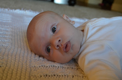Gabe was perfect for his blessing. He was wide awake, but he didn't make a sound. Scott blessed him, with Gabe's two grandpas and two members of the bishopric standing in the circle. Shauna recorded the blessing and typed it up later for me. It was a beautiful blessing.